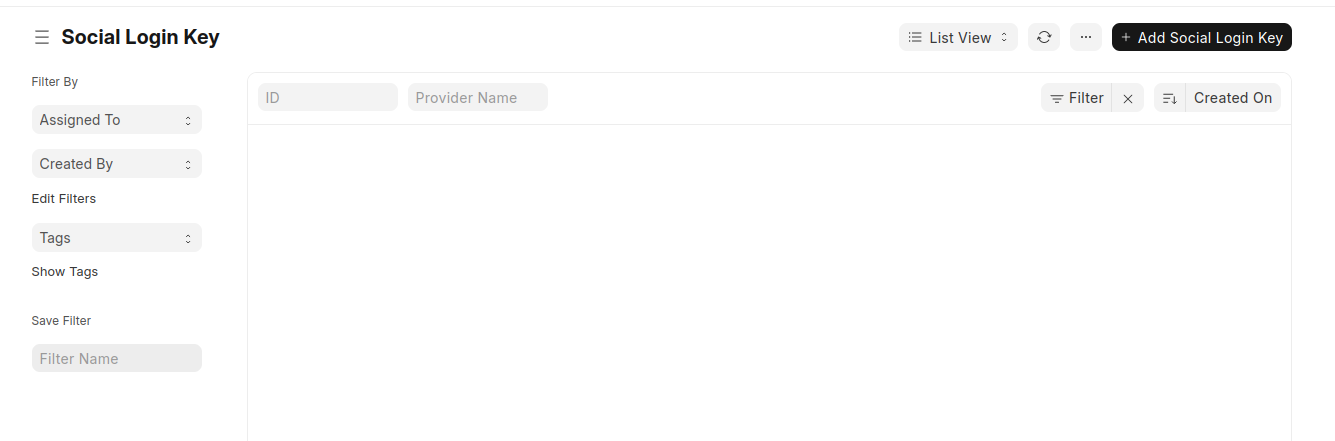 • From the Frappe main menu, go to Integrations and then select Social Login Key.