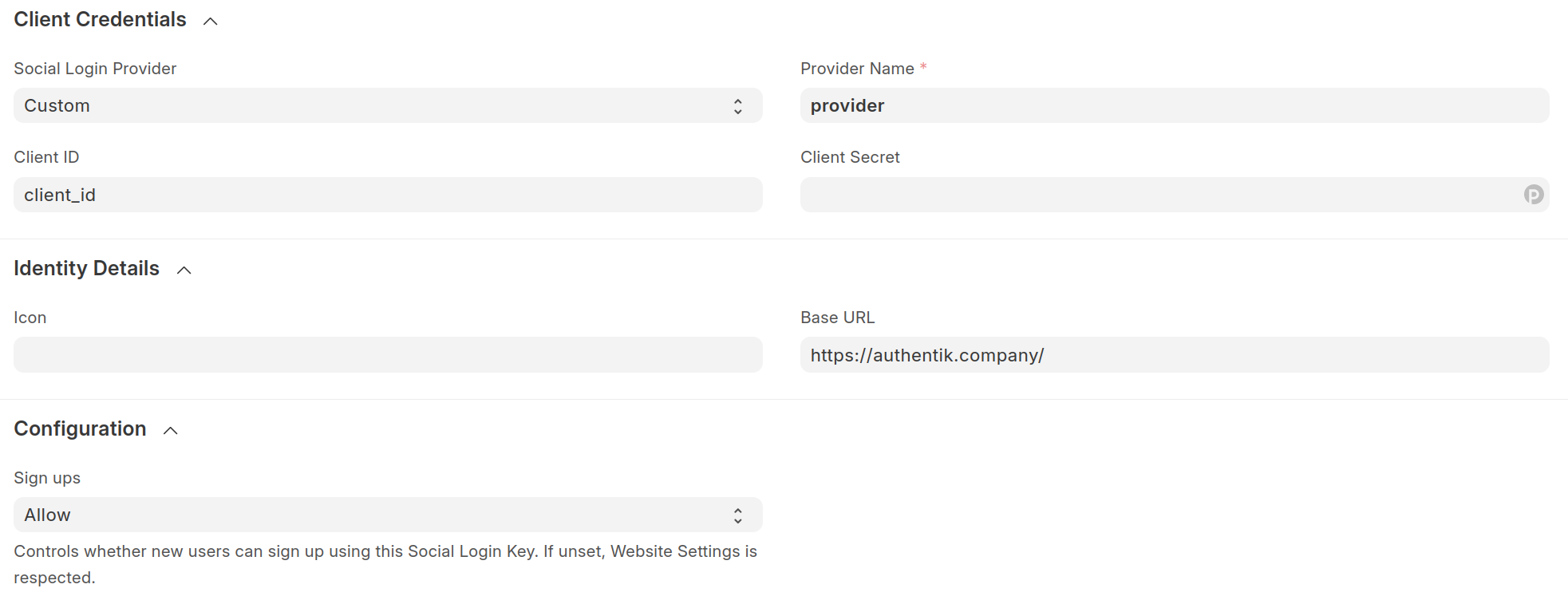 • Client Secret: Enter the Client Secret from the authentik wizard.